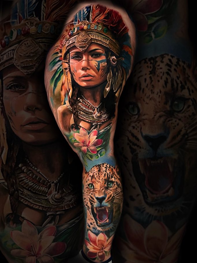 Du bist auf der Suche nach professionellen Farbrealistic Tattoos?